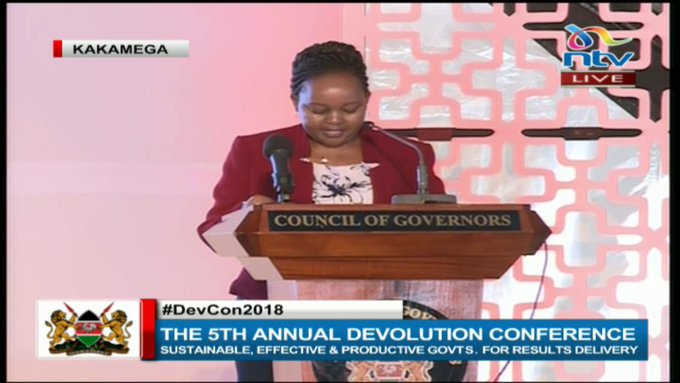 "While we are at it, we thank Kakamega Governor Wyclifef Oparanya for providing an enabling environment for a 24-hour economy during this devolution conference," Waiguru said drawing roars of laughter to the over 6000 delegates at the forum.